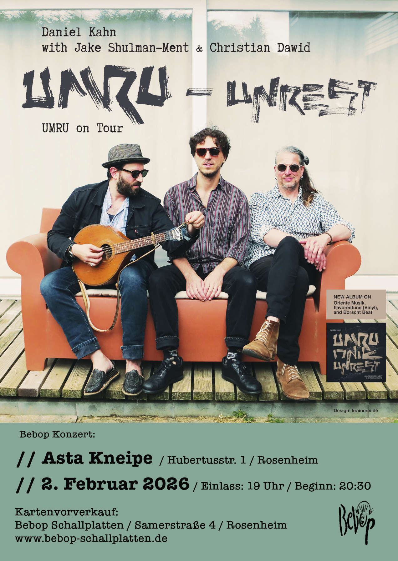 Kartenvorverkauf: Bebop Schallplatten, Samerstr. 4, 83022 Rosenheim