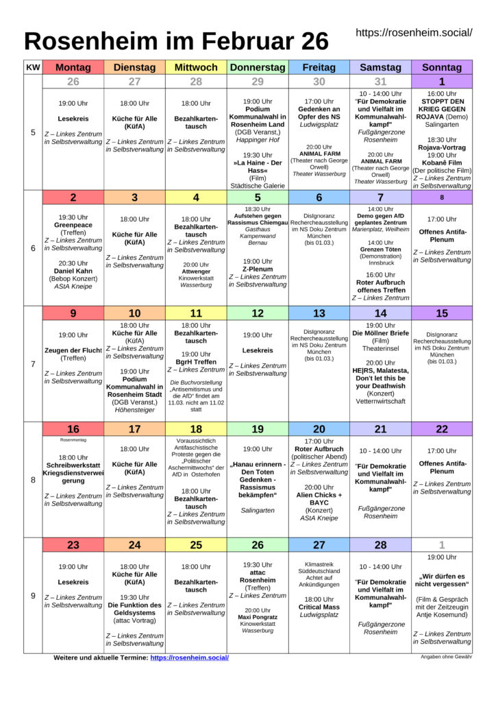 Rosenheim im November 2025 – Programm (pdf) zu ausdrucken